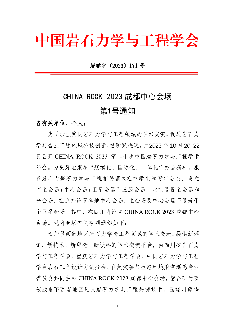 CHINA ROCK 2023 成都中心会场 第 1 号通知