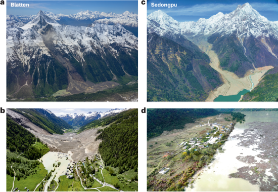 ▲典型灾害链:瑞士阿尔卑斯布拉滕(Blatten)和中国青藏高原色东普(Sedongpu)